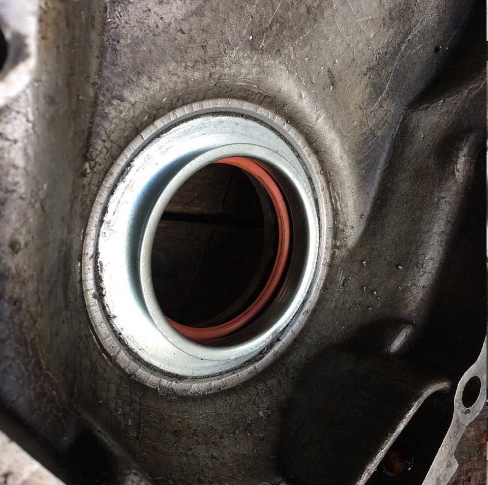 Убрав брызги масла я занялся передней крышкой. Отмыл ее и заменил передний сальник коленвала. Сальник использовал Victor Reinz п/н 803697800, к слову сказать аналогичный сальник от Erling 446.602 не имеет металлической оправки и поэтому болтается в посадочном месте как г-но в проруби.