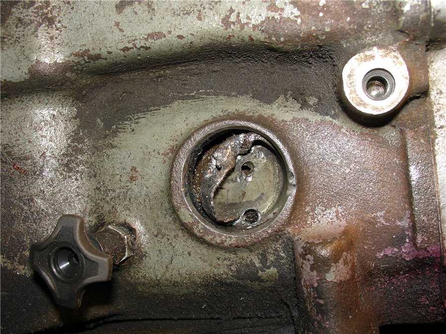 Затем пассатижами деталь поддевается и вытаскивается из гнезда. Если заглушка сильно проржавела и ее провернуть нет возможности, тогда в ней высверливается отверстие, вворачивается в него вороток и заглушка удаляется.