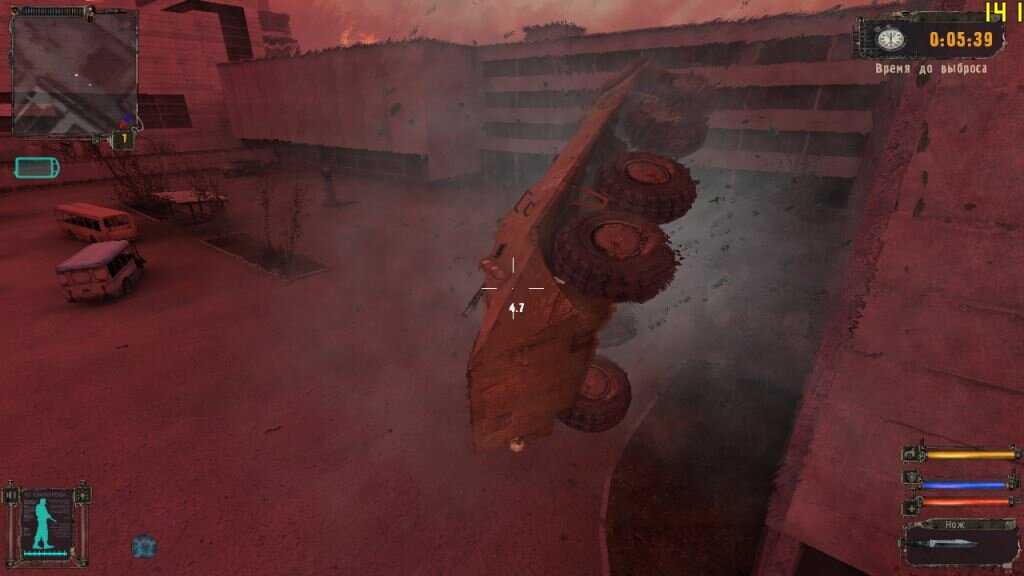 - Попадая на машине в аномалию, как герой, так и автомобиль будут получать урон. Не буду говорить про прочность машин – она, скорее всего, у всех машин одинаковая (утверждать не буду), и Нивы, или ЗАЗа хватает всего на три проезда по “Жарке”. Если машина теряет весь запас прочности – она взрывается, однако игрок урона практически не получает.