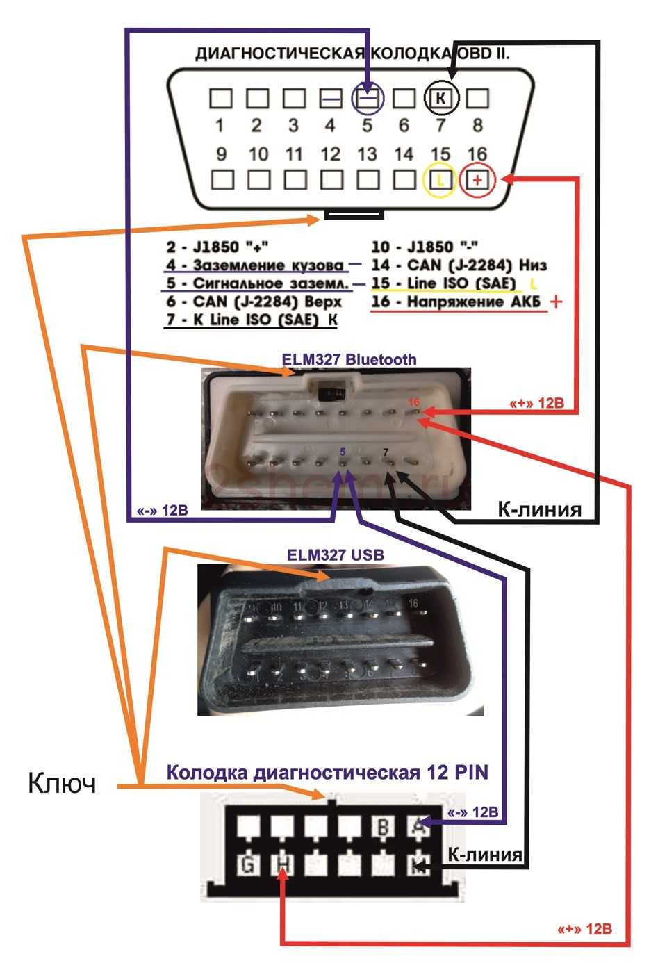 - Соединяете контакт «В», который имеет колодка диагностики и «массу»;