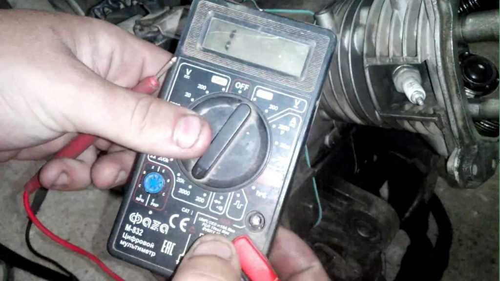 - ДХ снимается с трамблера, к нему подключается мультиметр (диапазон измерений должен быть в пределах, равных аккумуляторному значению).