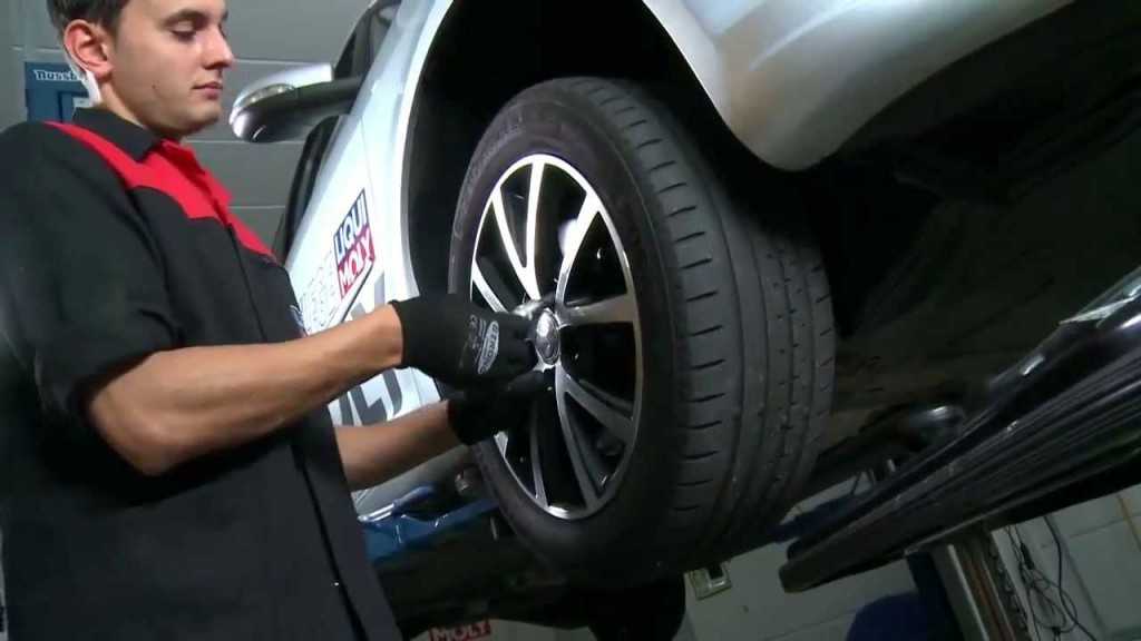 Процесс демонтажа переднего колеса для смазывания направляющих суппортов