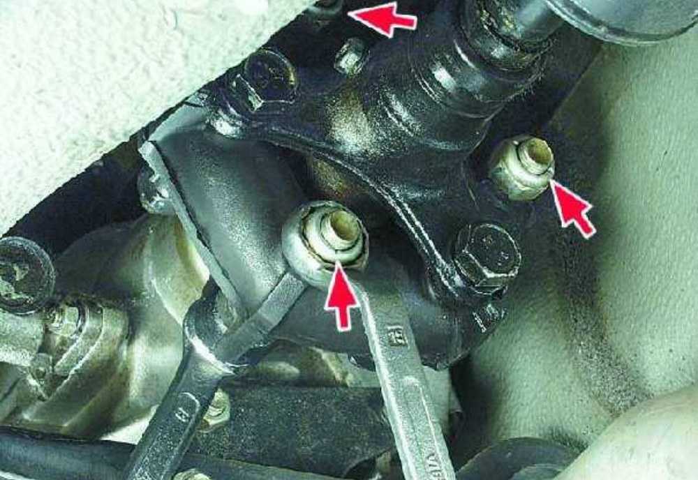 - На головке блока цилиндров находится кожух механизма сцепления — их нужно открутить при помощи гаечного ключа, а кожух — демонтировать. Кроме того, нужно снять траверсу днища кузова автомобиля.