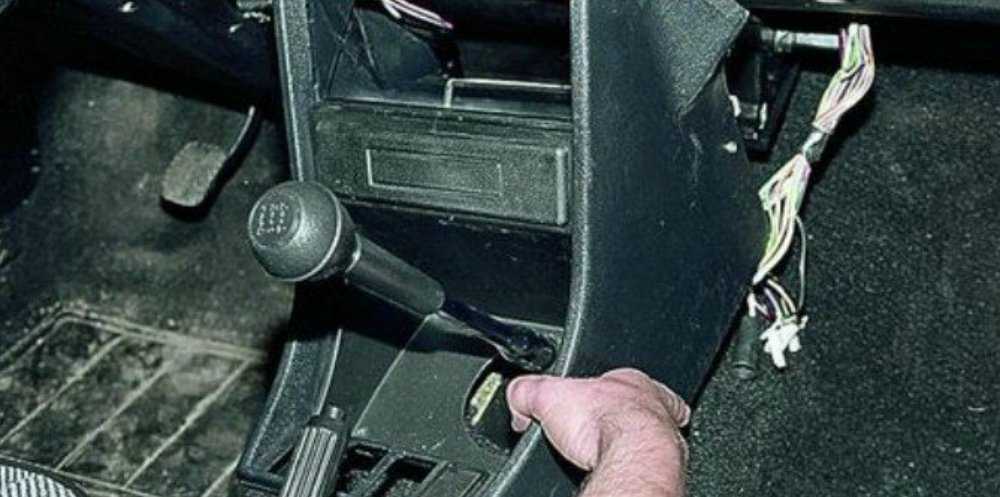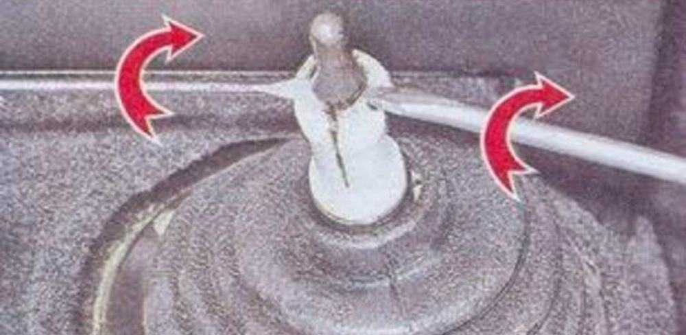 Отложите в сторону коврики и другие покрытия, находящиеся в салоне машины на полу, возле рычага коробки передач. Отсоедините ручку переключения от трансмиссии. Сделать это несложно если знать небольшой секрет – придавите деталь вниз и, поддев отверткой с тонким наконечником белую втулку из пластмассы, вытащите ее наружу.