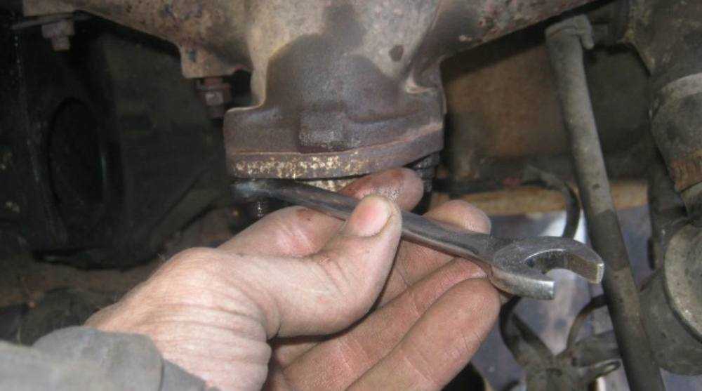 - Перед тем, как приступить к замене ДС, нужно отсоединить карданный вал. Для этого демонтируйте с колес тормозные барабаны и колодки. Возьмите гаечный ключ на «12» и отвинтите крепления полуосей, а затем вытяните их.