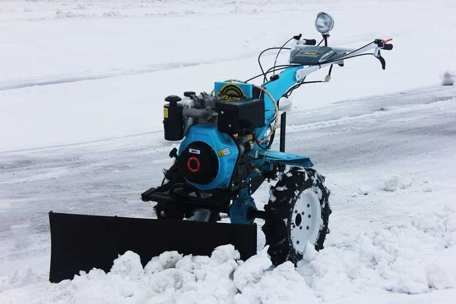 Мотоблоки широко используют в холодное время года. С уборкой снега справится мотокультиватор с 4-тактным бензиновым (или дизельным) двигателем.