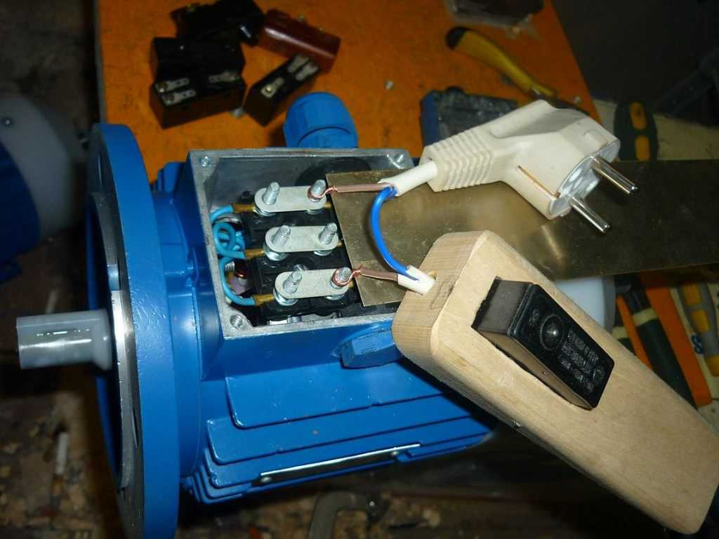 Подключение трехфазного двигателя к однофазной сети по схеме треугольник