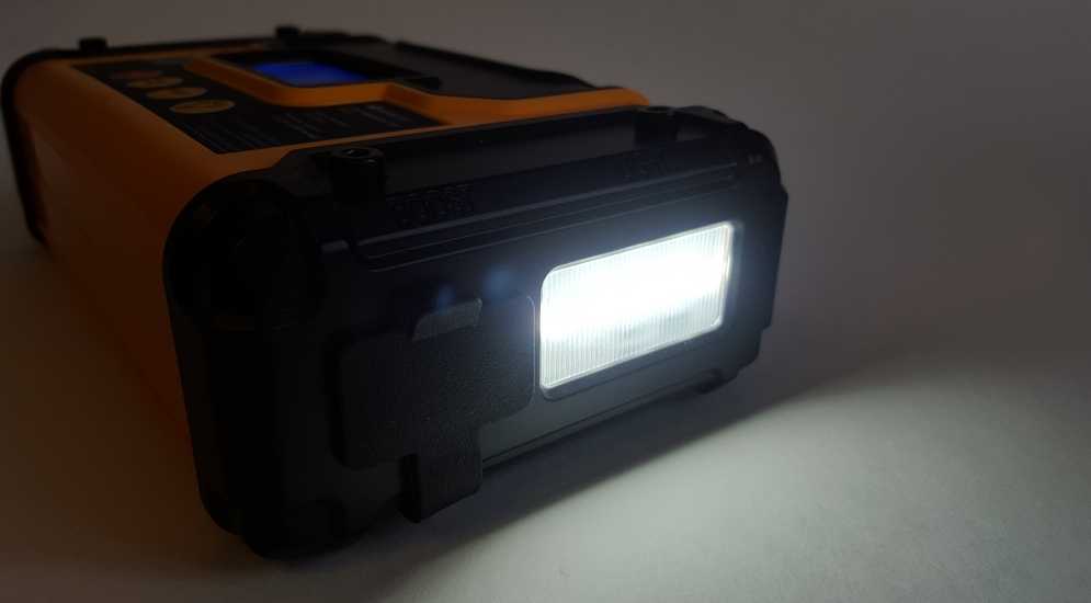- Функции: запуск двигателя, зарядка телефона/USB гаджета, фонарик, отображение заряда батареи;
