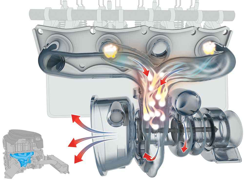- Параллельно с этим процессом появляются отработанные газы, которые направляются в выпускной коллектор.