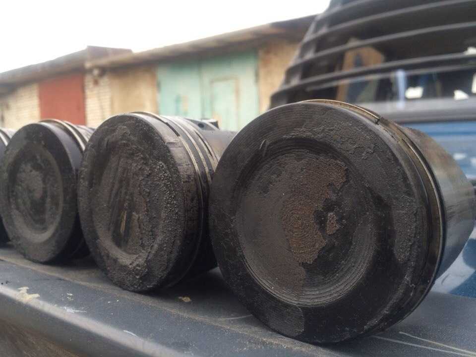 Поршни с тоже с жестким нагаром, и с какими то задирами, похоже от клапанов…
