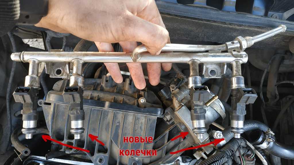 Что бы было легче устанавливать рампу назад, можно предварительно смазать резиновые кольца форсунок силиконовой смазкой. В дальнейшем, в процессе работы двигателя, она испарится.