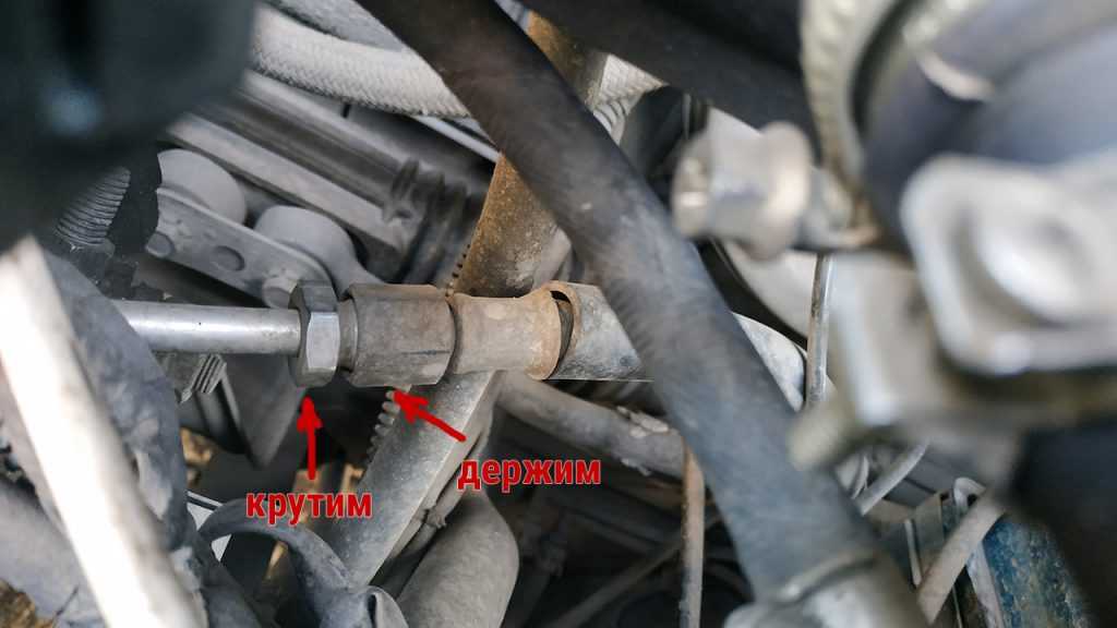 Теперь, когда давление стравлено, можно открутить рампу форсунок от шланга топливоподачи. Там две гайки под ключ на 17. Одним ключем держим гайку на шланге, вторым крутим гайку на рампе.