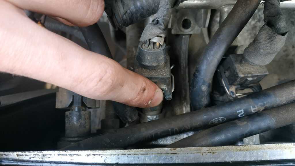 И последнее, что осталось — снять разъемы питания форсунок. Они фиксируются металлической скобой. Что бы снять разъем, нужно нажать на скобу и потянуть сам разъем вверх.