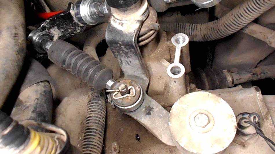 - разъединение наконечника троса и рычага МКПП (предварительно сжимают фиксаторы наконечника пассатижами);