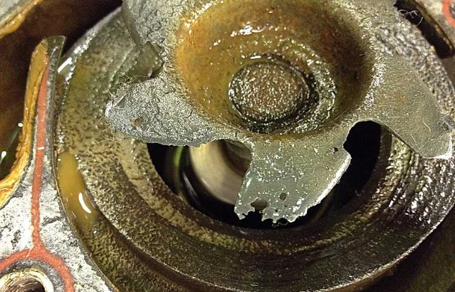 Для более точной диагностики помпы её необходимо снять с двигателя. Очень часто неисправность насоса сопровождается перегревом мотора. Визуальный осмотр элемента покажет его состояние. Если крыльчатка заклинила, прокручивается на валу или её лопасти рассыпались, насос подлежит замене.