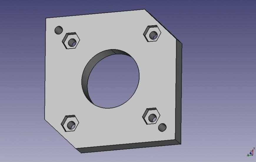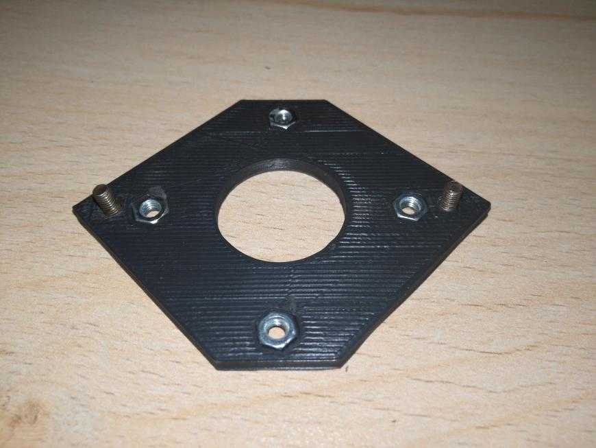 Спроектировал во FreeCAD-е и распечатал переходную пластину с закладными гайками м3 с этого мотора на nema17.