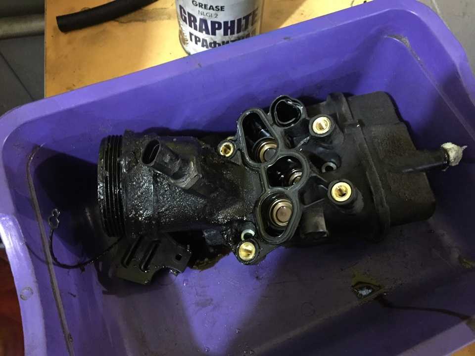 При снятии стакана необходимо сразу закрыть канал в двигателе, чтобы масло не смешалось с антифризом. В противном случае придется выполнять замену масла во избежание образования эмульсии.