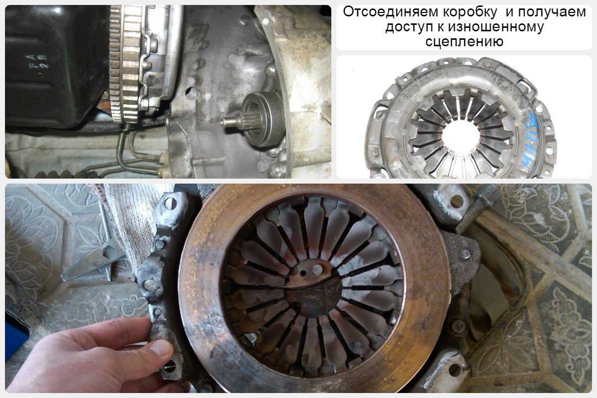 Отсоединяем коробку и получаем доступ к изношенному сцеплению