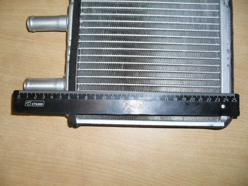 Радиатор отопителя, как и радиатор охлаждения имеют схожую конструкцию, но отличаются размерами и назначением. Назначением радиатора отопителя является обогрев салона автомобиля. Устанавливается он в корпусе печки в подкапотном пространстве и имеет два штуцера ввод и вывод.