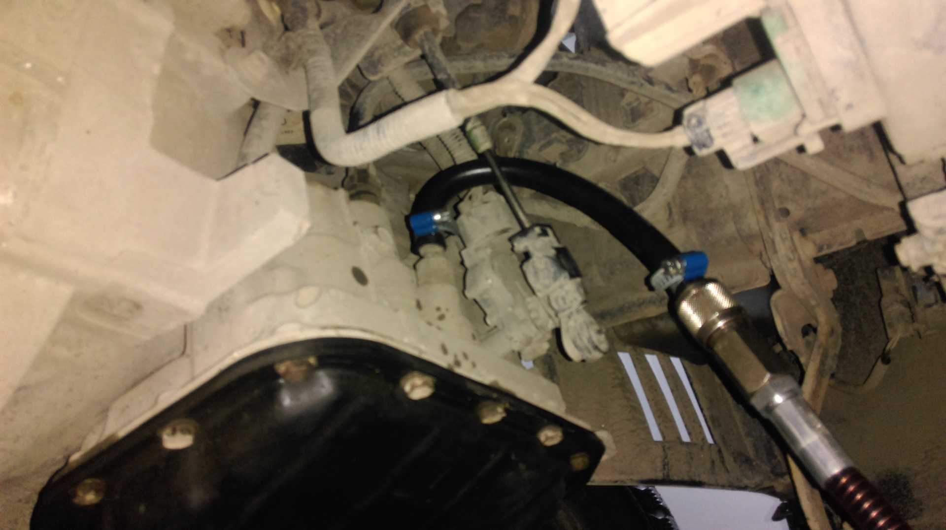 Таким же способом масло доливается в роботизированную КПП, только здесь надо прежде демонтировать воздушный фильтр для открытия доступа к заправочному отверстию.