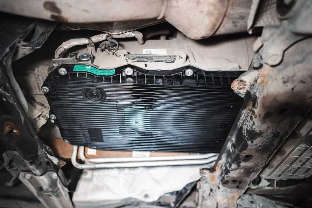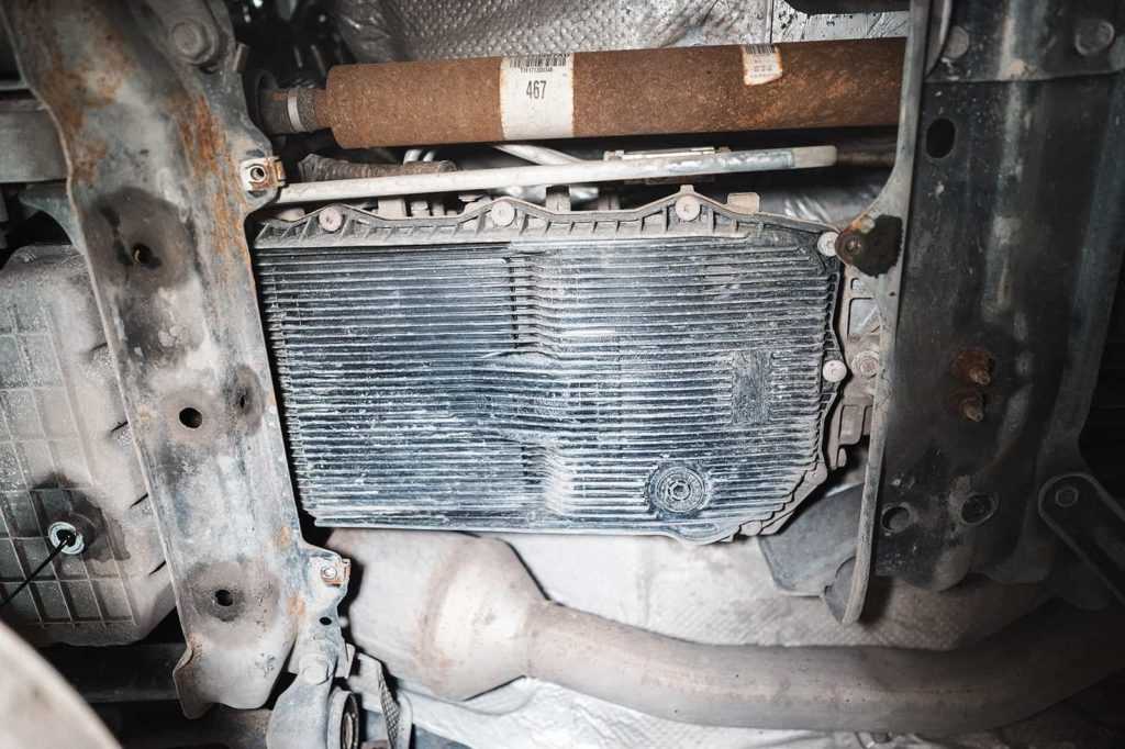 Поддон АКПП легко распознать: тонкий, ребристый и пластиковый. Выглядит совсем не по-внедорожному.