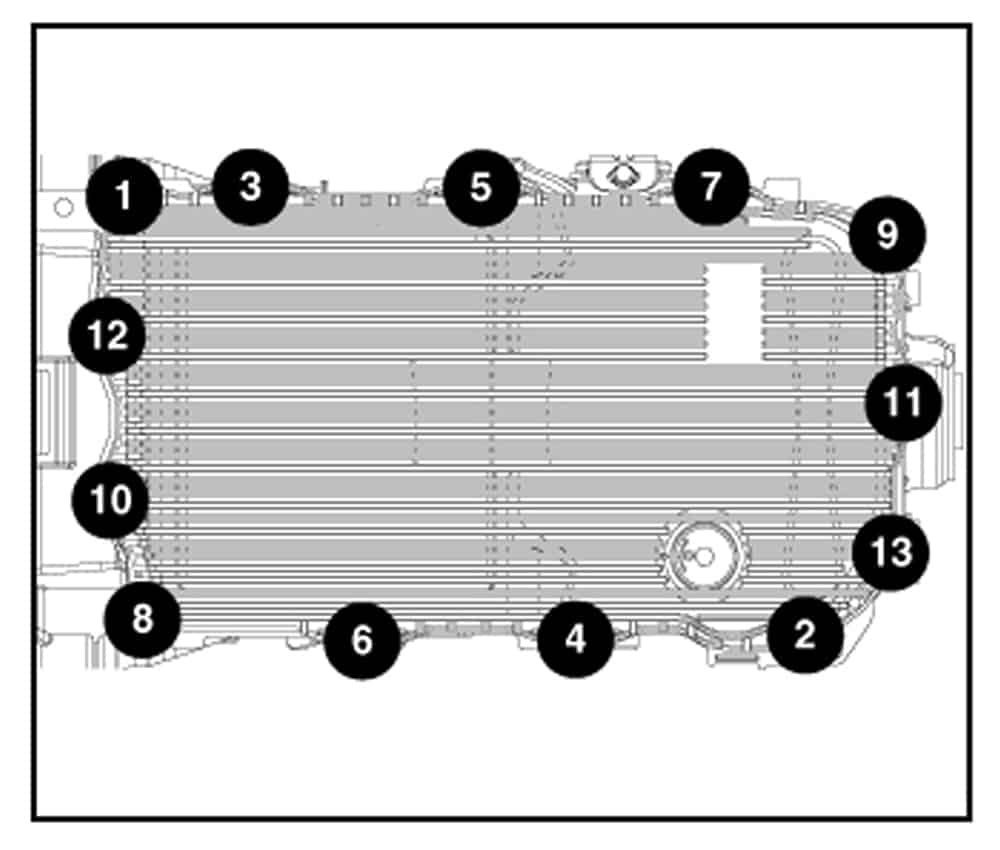 Затягивать болты поддона нужно согласно схеме усилием 10 Н·м.