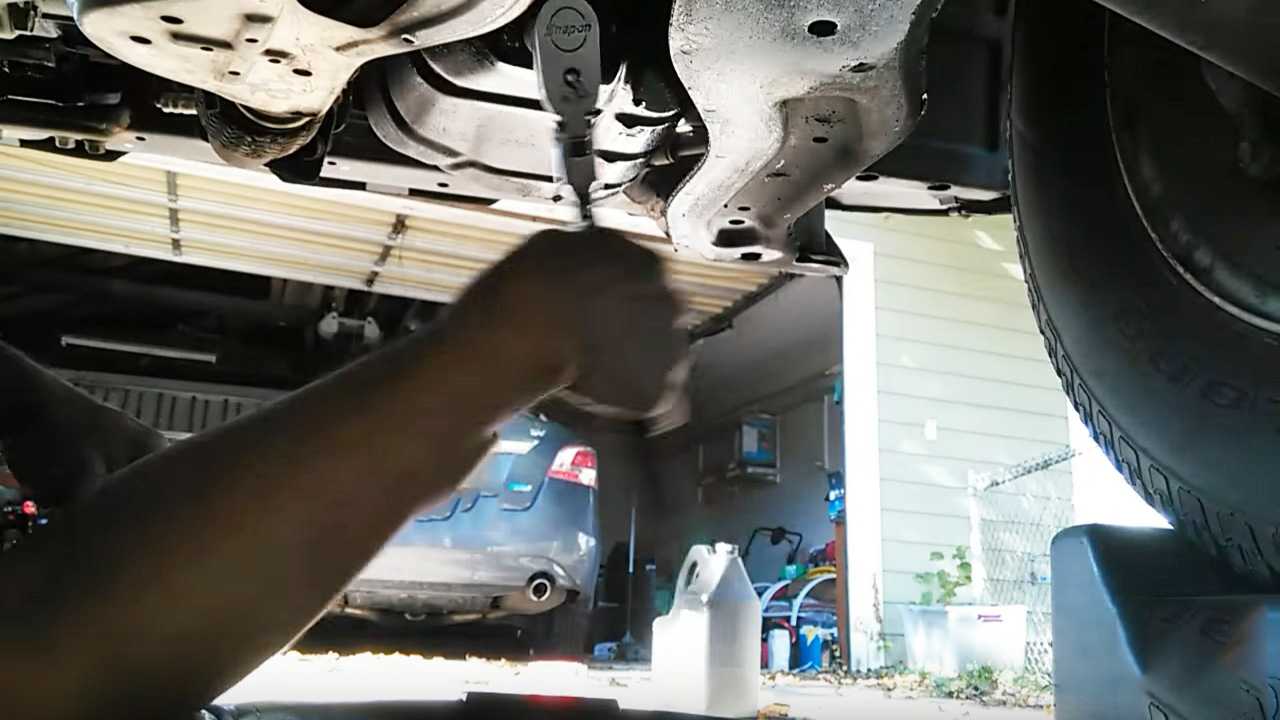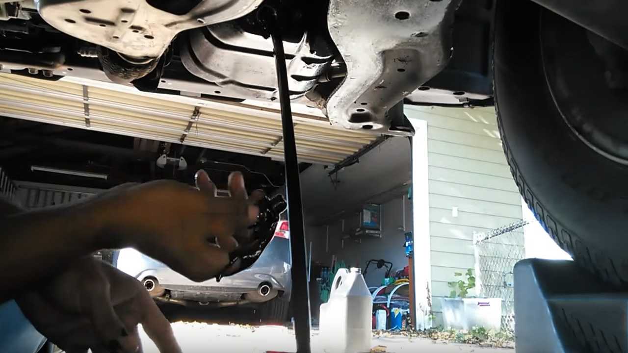 Поместите сливной масляный поддон под двигатель. Снимите пробку для слива масла.Дайте маслу стечь не менее пяти минут.