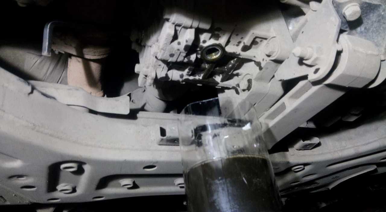 3. Ставим под машину заранее подготовленную емкость для отработанного масла.