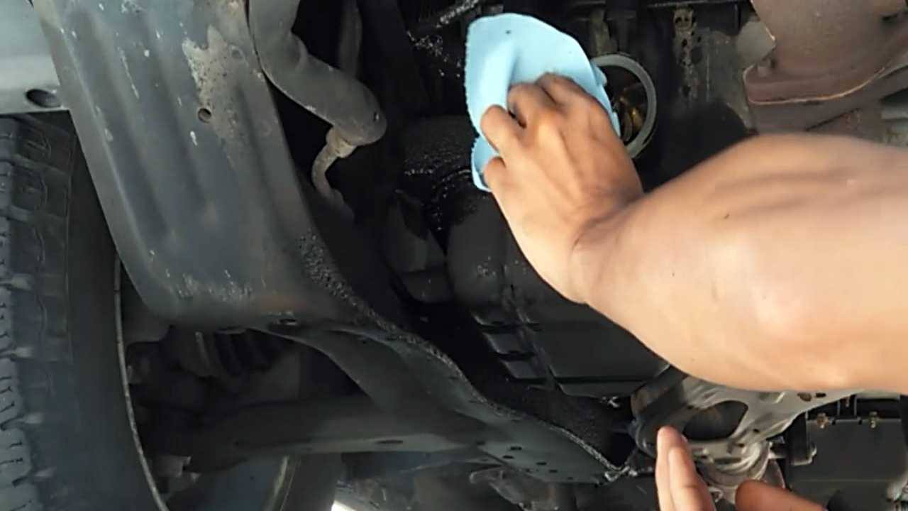 8. Очищаем потеки масла возле сливного отверстия ветошью.