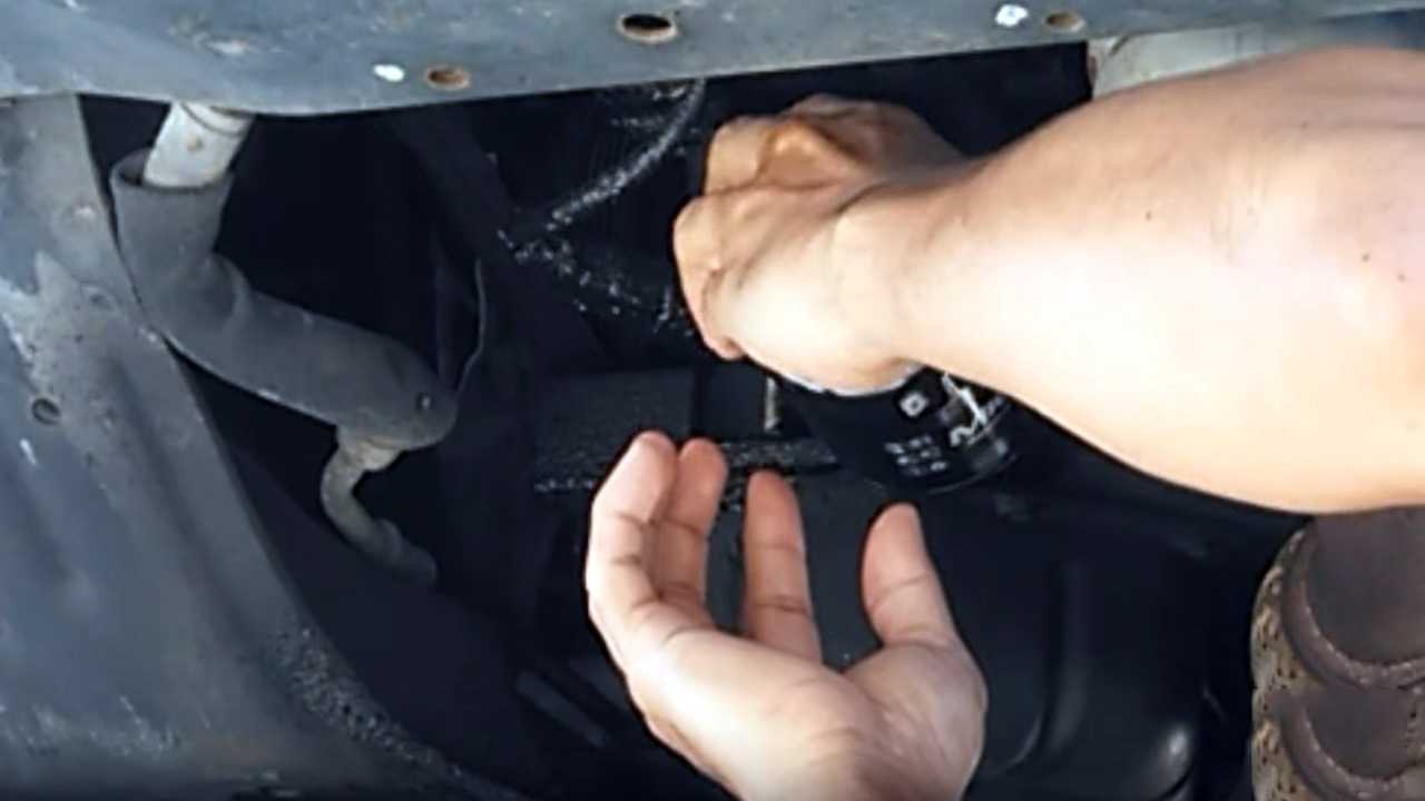 - Снимите масляный фильтр с помощью ключа для масляного фильтра. Вы можете удалить масляный фильтр, повернув его против часовой стрелки.