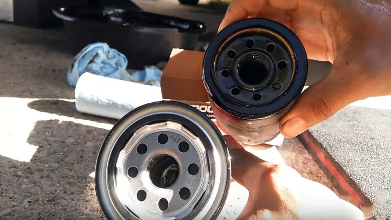 - Очистите поверхность, где будет установлен масляный фильтр. Нанесите тонкий слой чистого масла на прокладку нового масляного фильтра.