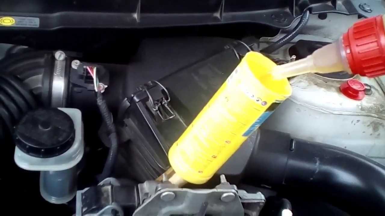Берем канистру с масло и заливаем в горловину необходимое количество масла (для двигателя HR16DE нужно 4.5 л, для MR18DE 4.5, в K9K 4.4). Чтобы не перелить лучше лить не все сразу, а после проверки уровня щупом долить необходимое количество.