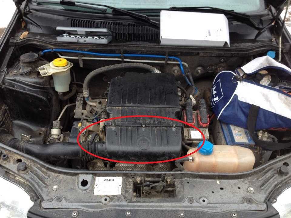 - находим пластиковый корпус воздушного фильтра – он черного цвета, располагается слева от аккумуляторной батареи;