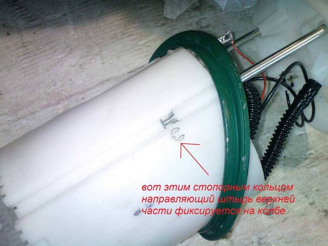 В следующем шаге я, похоже, лохонулся. Сначала нужно было собрать модуль, а уже потом одевать второй конец трубки на верхний штуцер. Трубка очень жесткая и при сборке оказалось, что бензонасос стоит немного под углом. и проблема его собрать, так как трубка выворачивает бензонасос Но снимать ее уже не хотелось, поэтому оставил как есть.![]()