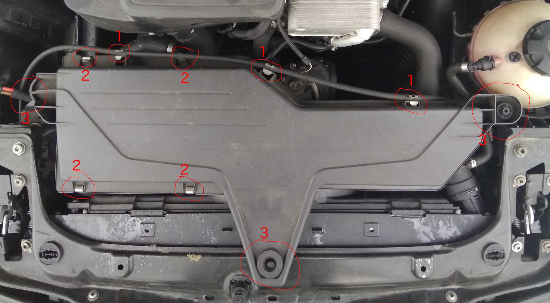 - открутить четыре полуповоротные пластиковые клипсы (шестигранником на «10») и снять пластиковый кожух;