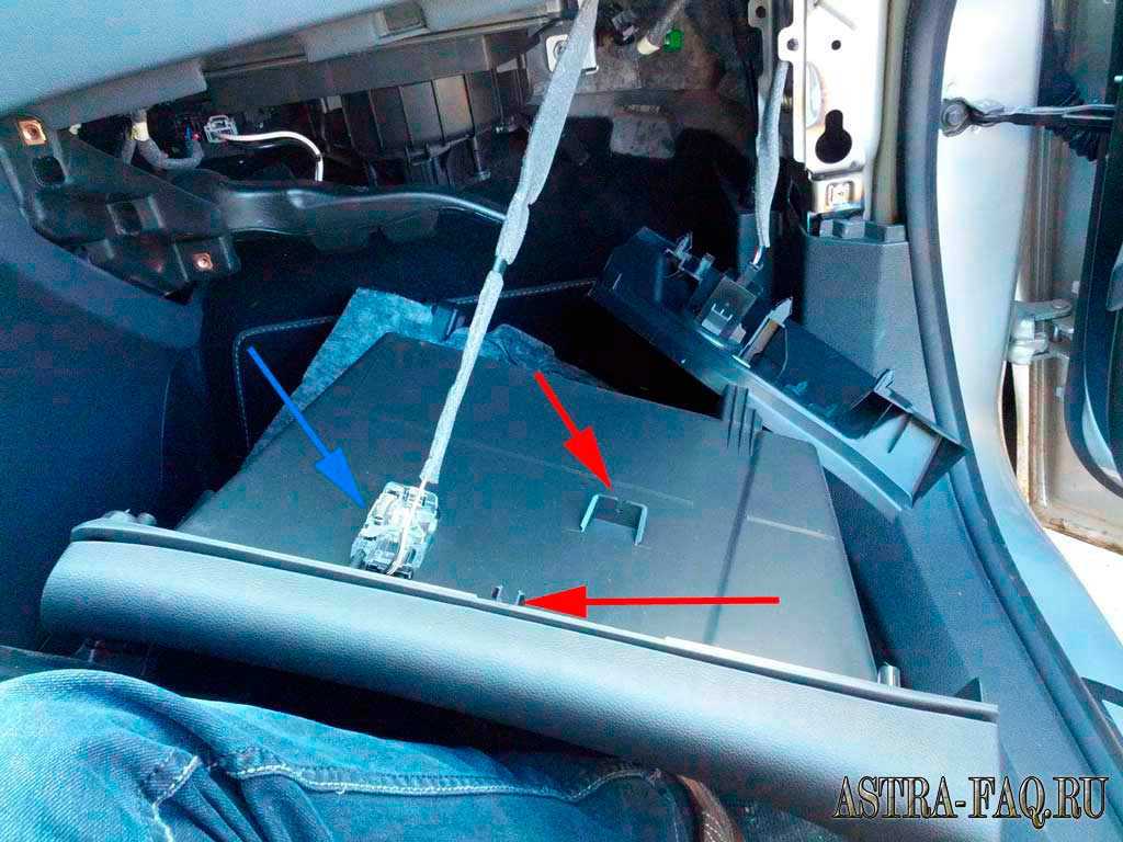 Как и в большинстве иномарок, он устанавливается на участке между печкой и воздуховодами, в данном случае – за перчаточным ящиком. Поэтому первым делом приступаем к его демонтажу, предварительно опустошив его от полезного и бесполезного хлама.