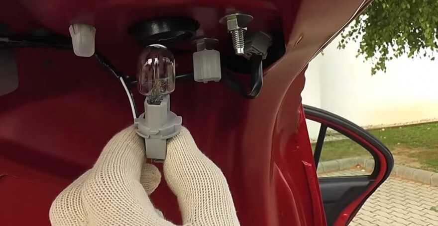 Чтобы поменять эти лампы, понадобится снять обшивку двери багажника, которая крепится клипсами. После этого доступ к лампам открыт, нужно лишь повернуть и достать лампу, а затем отсоединить ее от штекера.